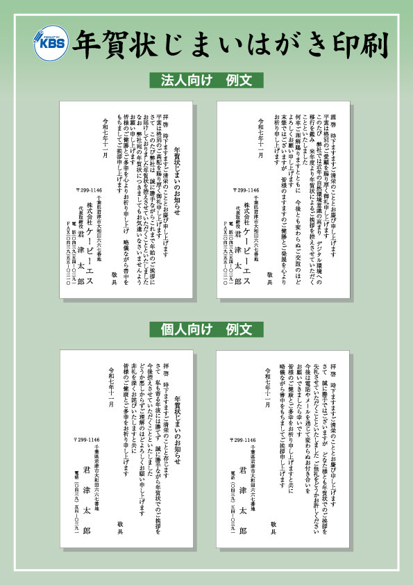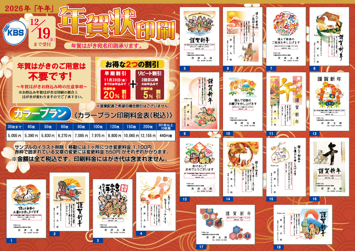 いつもお世話になっている人に、しばらくお会いしていないあの人に、年賀状を送るお手伝いをKBSがいたします。